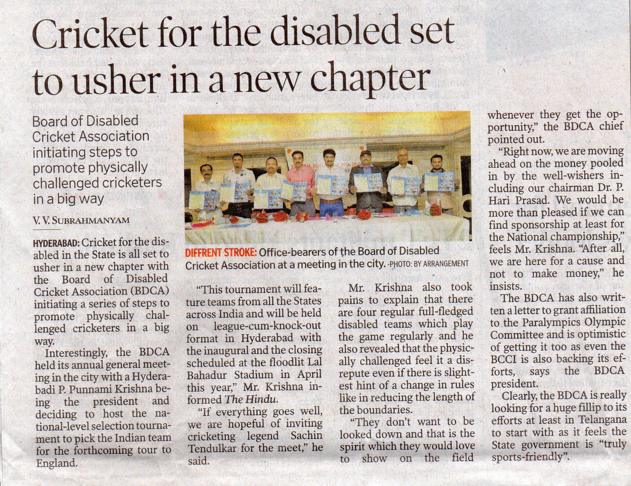 The Board of Disabled Cricket Association (BDCA India) was formed in 2007 with the mission to promote the game of cricket for people with disabilities nationwide.